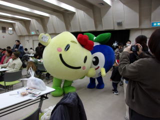 | チーバくんも参加(左上)社協のまっころんに松戸市のみのりちゃんも(右上)ゆるキャラがいっぱい |